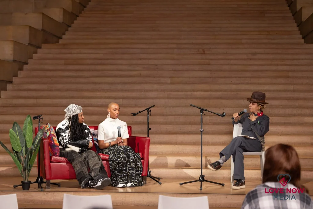 Throughout the day, Jos Duncan-Asé, founder and conceiver of the Love Now Media brand, engages the crowd in affirming exercises and quick questions that challenge everyone to reframe their actions and thoughts around intimacy and affection. “Where can you receive more love?” She queries a crowd. We are thrown off, yet pleasantly surprised because in these dystopian times, who asks how we want to be loved? These powerful questions also extend to panelists.