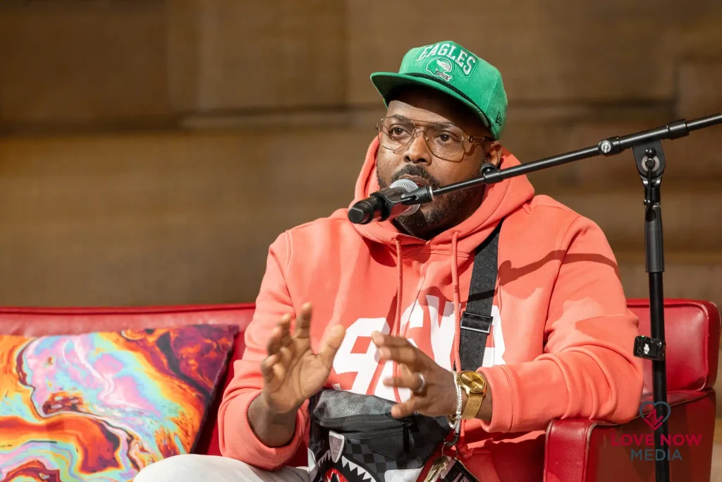 Author, artist and educator, Khalil Munir in conversation with Jos Duncan-Ase of Love Now Media at the BeLoved Stories event on February 15, 2025. Photo credit: Tezarah Wilkins/Love Now Media