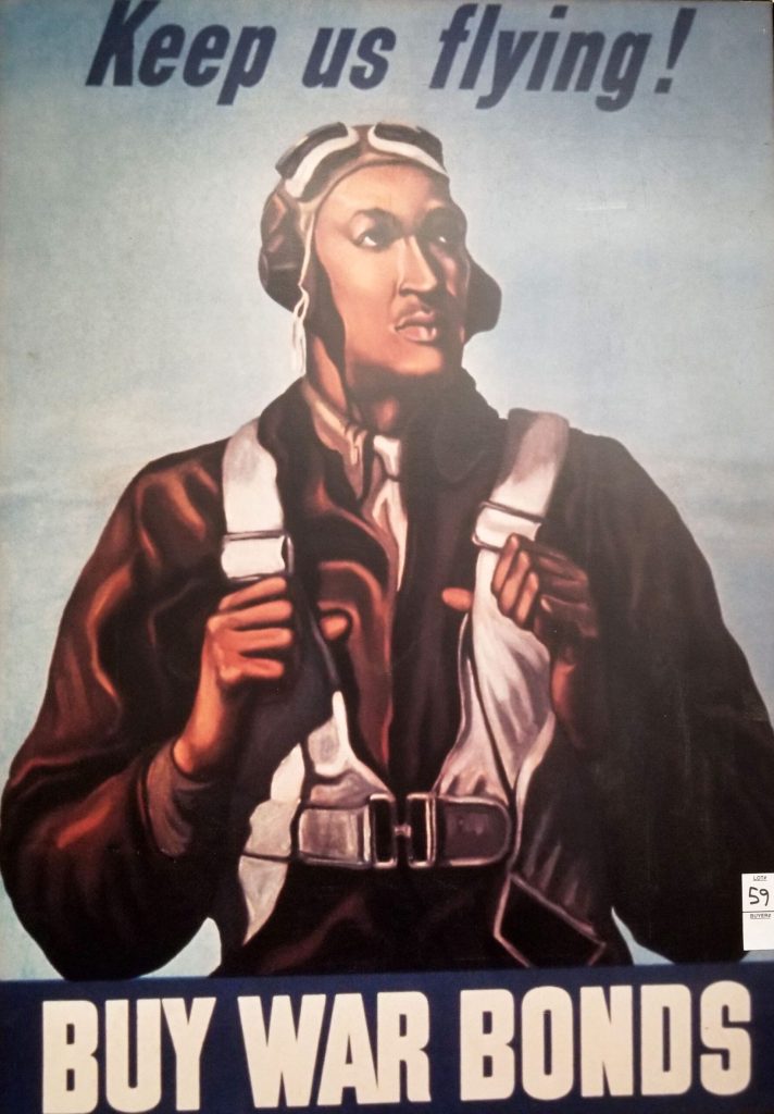 This poster featuring Tuskegee Airman Lt. Robert W. Deiz was used by the U.S. government to persuade Blacks to buy war bonds during World War II. Photo by Sherry L. Howard