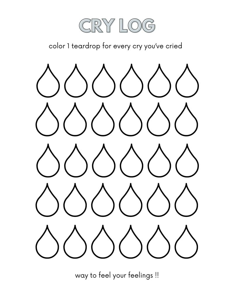 If I’m being honest, I’ve got to admit that while this cry log is exciting for me because I am actively working to shift my relationship to crying, I’ve had moods where I want nothing to do with it. I’ve had moods where this log and having emotions, in general, is so cringey for me that it makes me want to run away from myself. For a few weeks this month, I was crying multiple times every day, and I was exhausted. Reporting my cries into the cry log felt like a chore that I was not invigorated by anymore. When I noticed these feelings, I wrote a note in my log to this effect and gave myself space to let myself cry because I needed to, without the pressure of documenting it. I am trying my best to remind myself that my cry log and other tools like mood trackers and talk therapy are here when we need them for as long as they’re helpful, and we can put them down (or pick them back up) whenever the mood strikes.