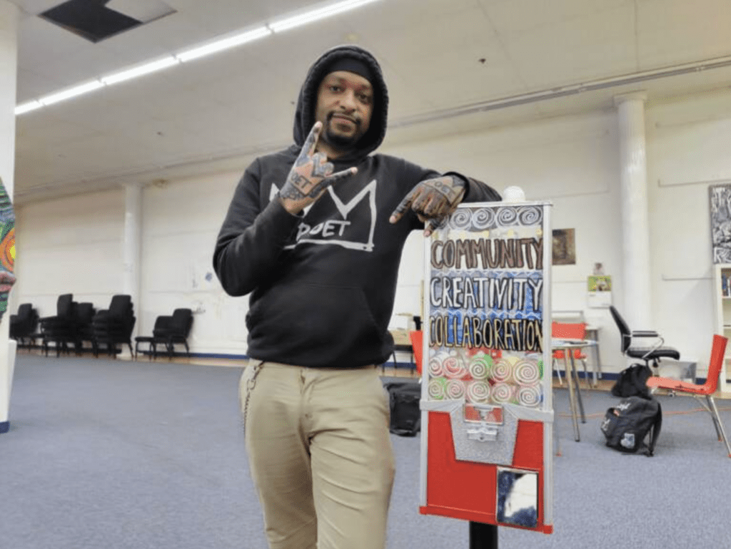 Program director Talia Giles says the poem and the gumball machine are a good fit for the PSL space.