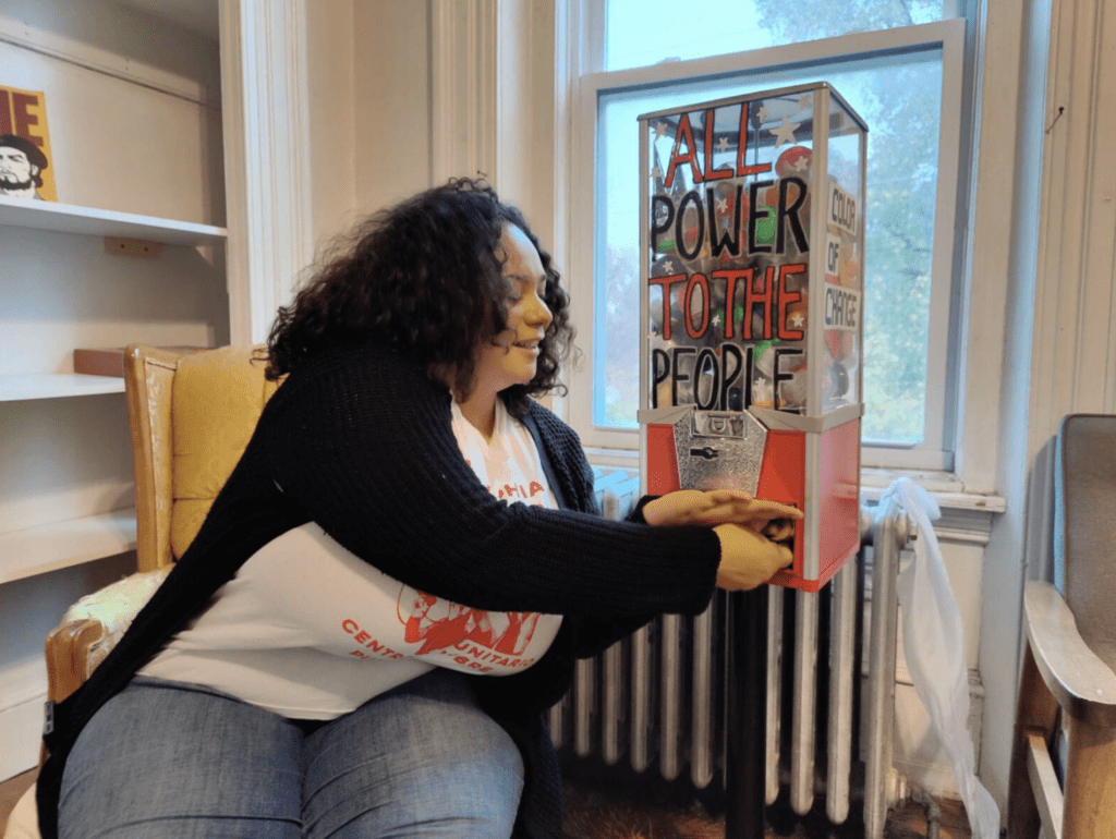 LindoYes hopes other people have similarly warm and nostalgic feelings toward grocery store gumball machines. They are currently in three locations in Philadelphia: the South Philadelphia Community Fridge at the Bok Building at 9th and Mifflin, the Liberation Center on Norris Square in Kensington, and the headquarters of the Painted Bride at 52nd and Market.